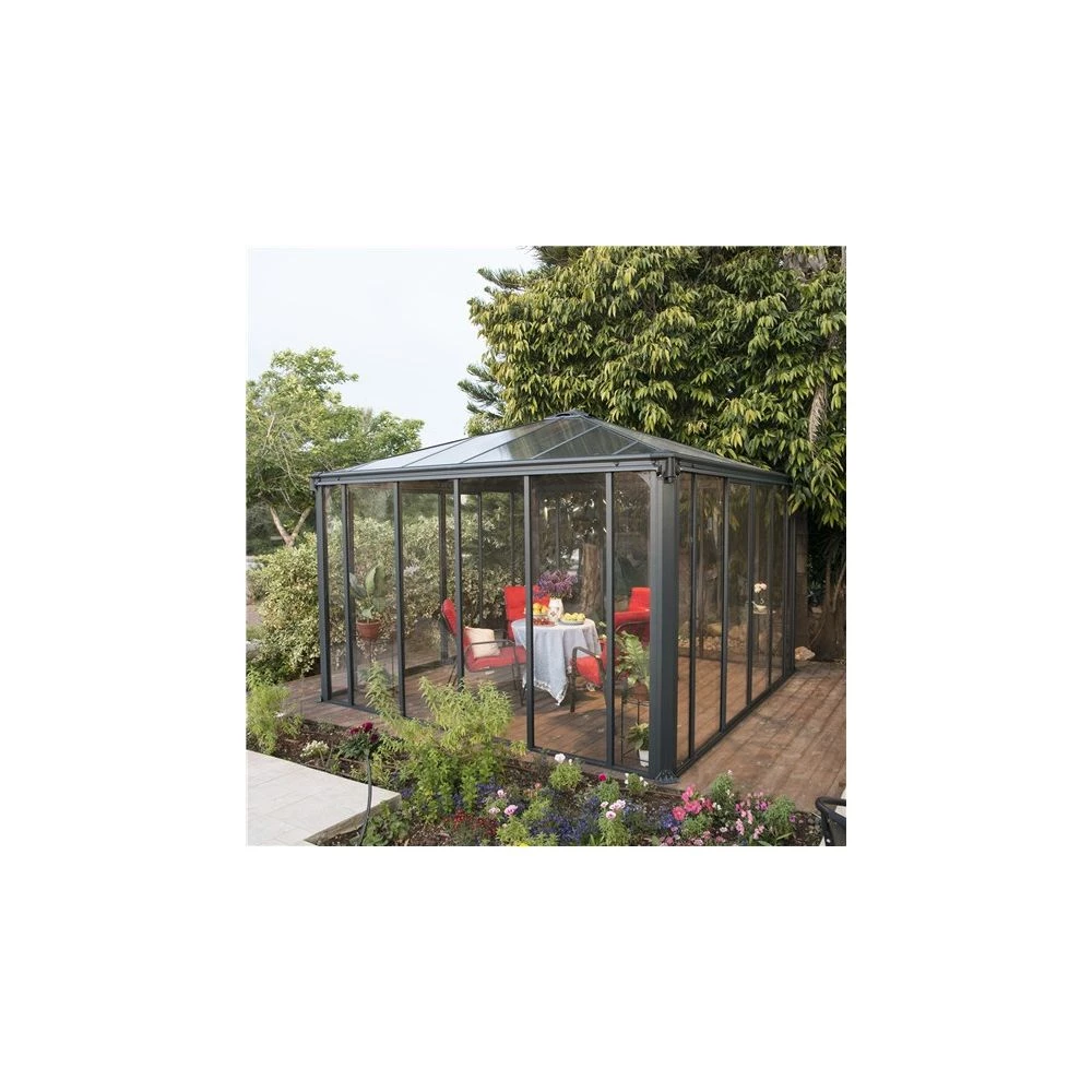 Ledro 3600 lukket havepavillon fra PALRAM giver elegance til din have og kan bruges hele året. Den er fremstillet i grå en pulverlakering med et bronze glasur farvet tagkonstruktion. Den er rustbestandig og ser fantastisk ud i enhver have.