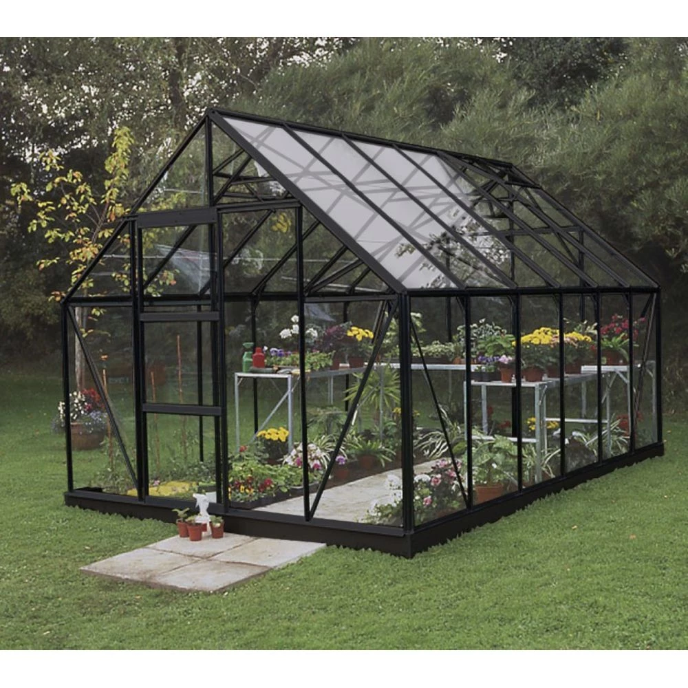 Halls 9,9m² Drivhus sort med 3 mm hærdet glas inkl. fundament – F09882