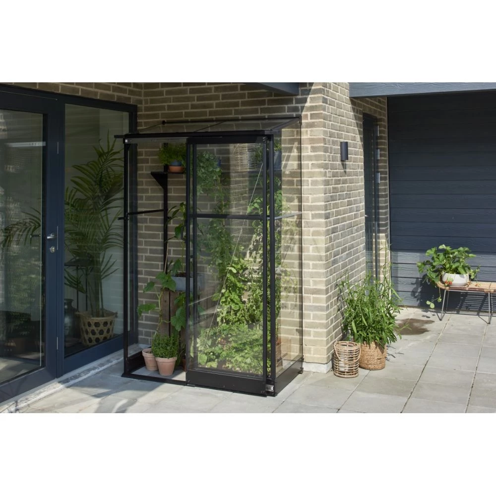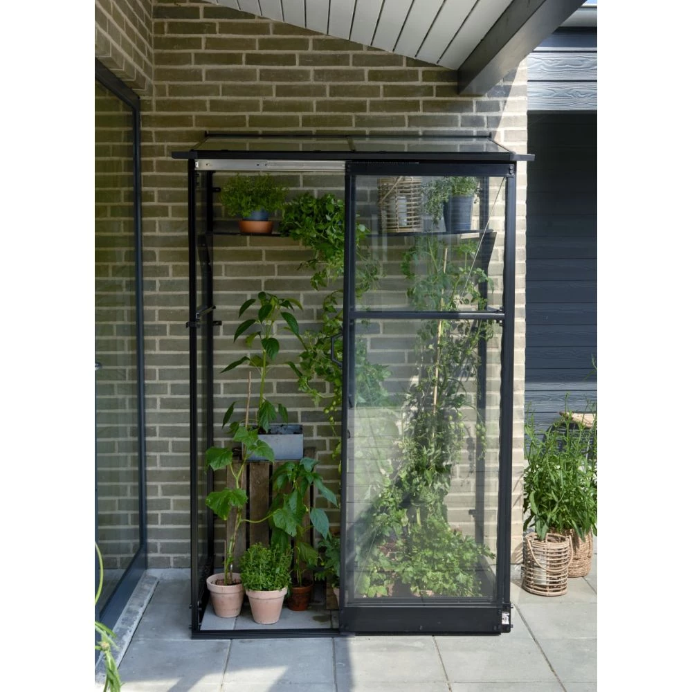 Halls Drivhus Qube Lean-to 42 Sort M/ 3 Mm Hærdet Glas – F09934