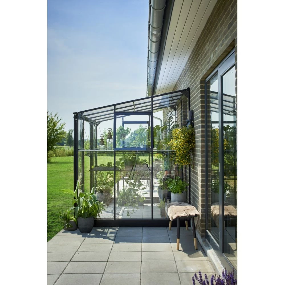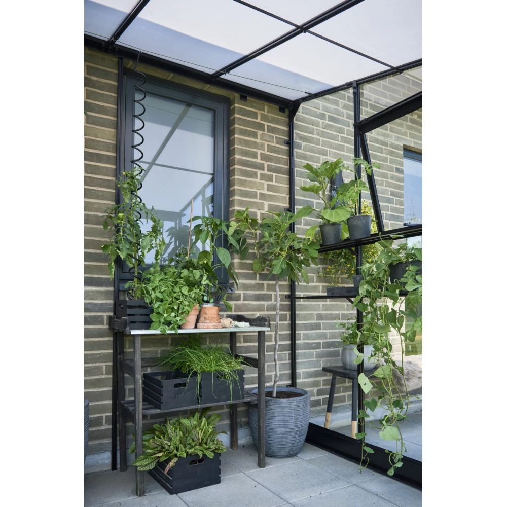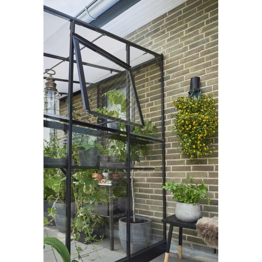 Halls Drivhus Qube Lean-to 68 Sort M/ 3 Mm Hærdet Glas – F09936