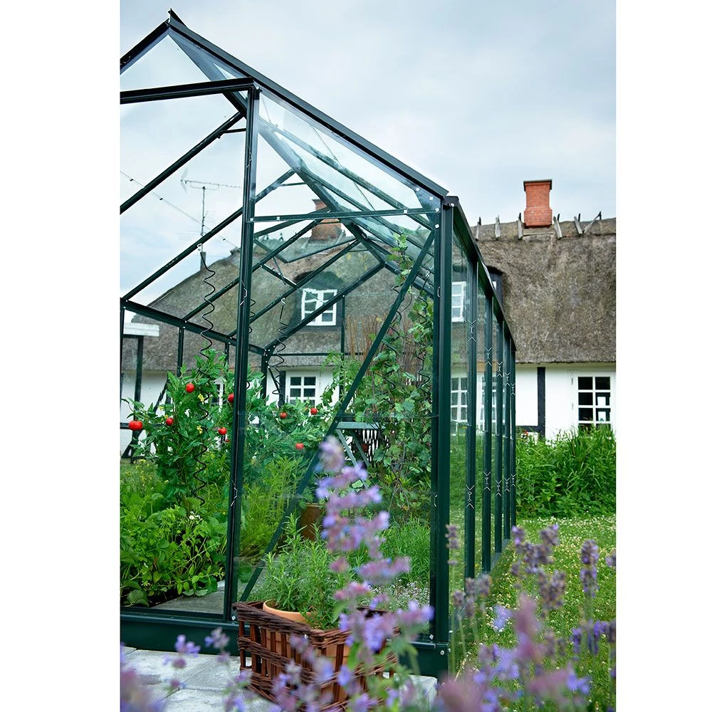 Denne model er vores bedst sælgende igennem tiderne. Det er et perfekt begynderdrivhus og passer ind i haven, hvor der ikke er så meget plads. Glas og polycarbonat monteres nemt med klips og glassnor, og med huset får man en letløbende skydedør og vindue til effektiv ventilation.