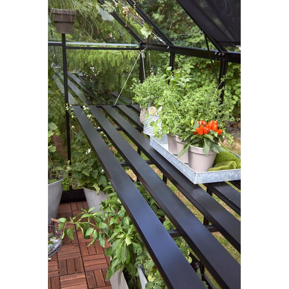 Til dit Halls Qube+ 88 drivhus finder du her det originale og smarte drivhusbord / plantebord i sort, der i design og størrelse passer perfekt til drivhuset.